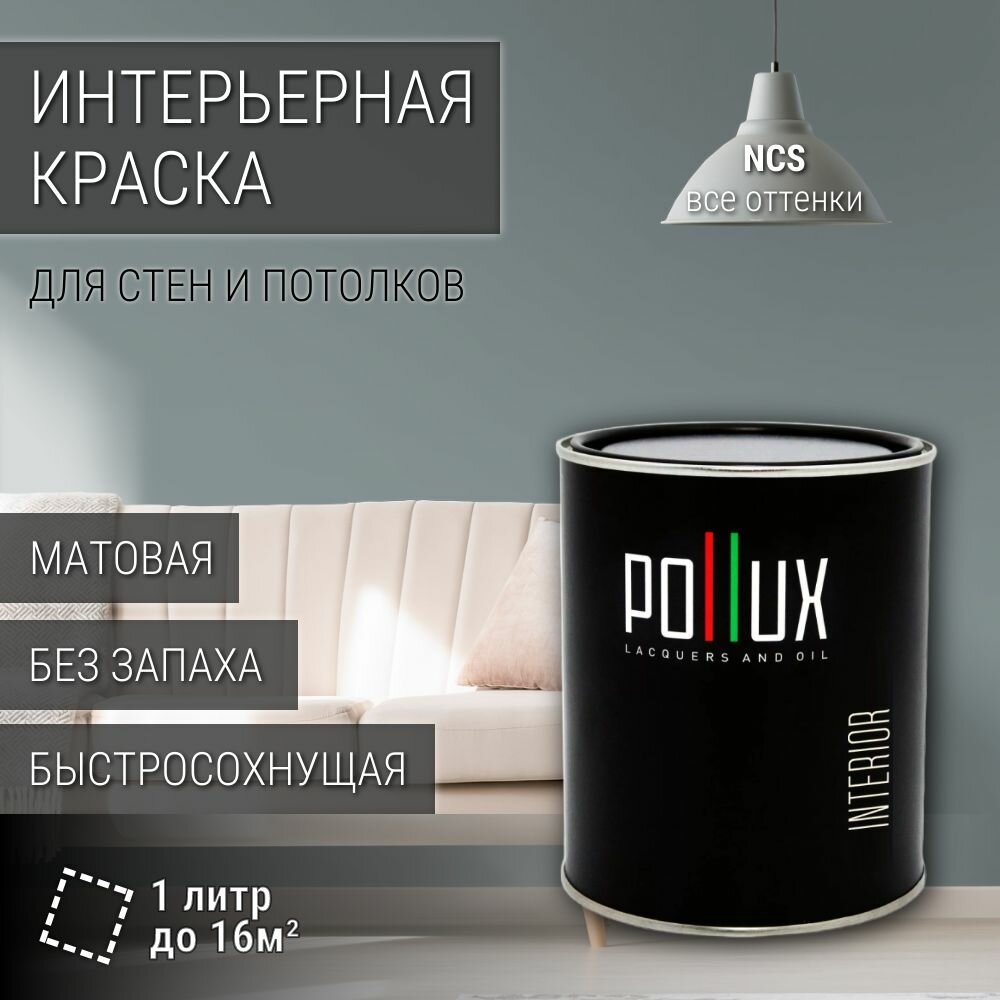 Краска моющаяся интерьерная для стен и потолков, Pollux INTERIOR без запаха, быстросохнущая, акриловая, матовое покрытие, цвет NCS S 4005-B20G, 1л. информация: