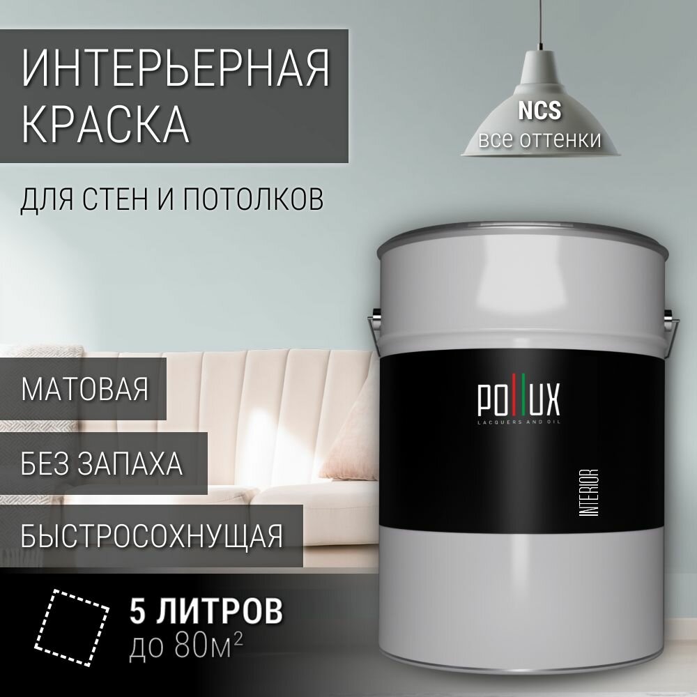 Краска моющаяся интерьерная для стен и потолков, Pollux INTERIOR без запаха, быстросохнущая, акриловая, матовое покрытие, цвет NCS S 1005-B20G, 5л. информация: