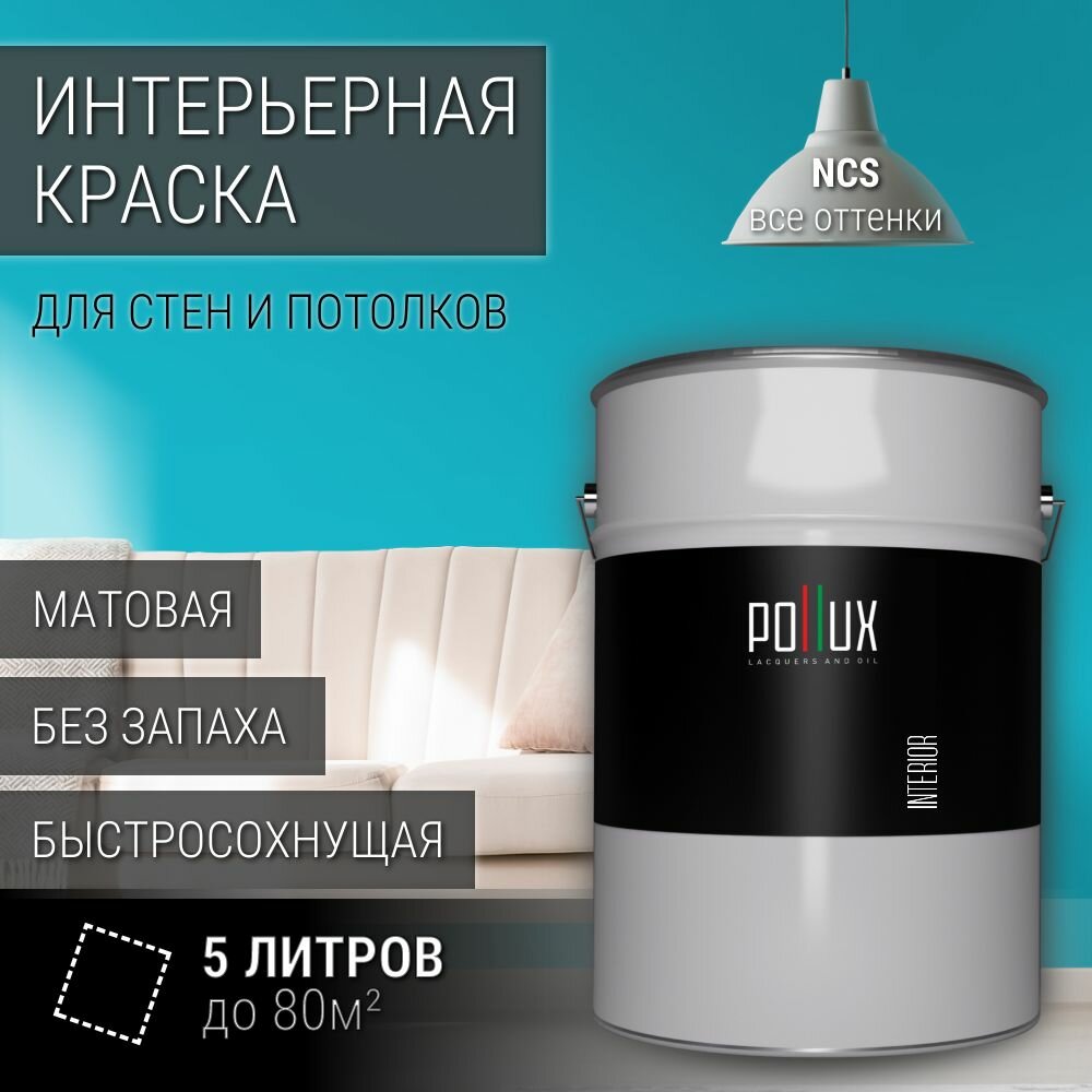 Краска моющаяся интерьерная для стен и потолков, Pollux INTERIOR без запаха, быстросохнущая, акриловая, матовое покрытие, цвет NCS S 1050-B20G, 5л. информация: