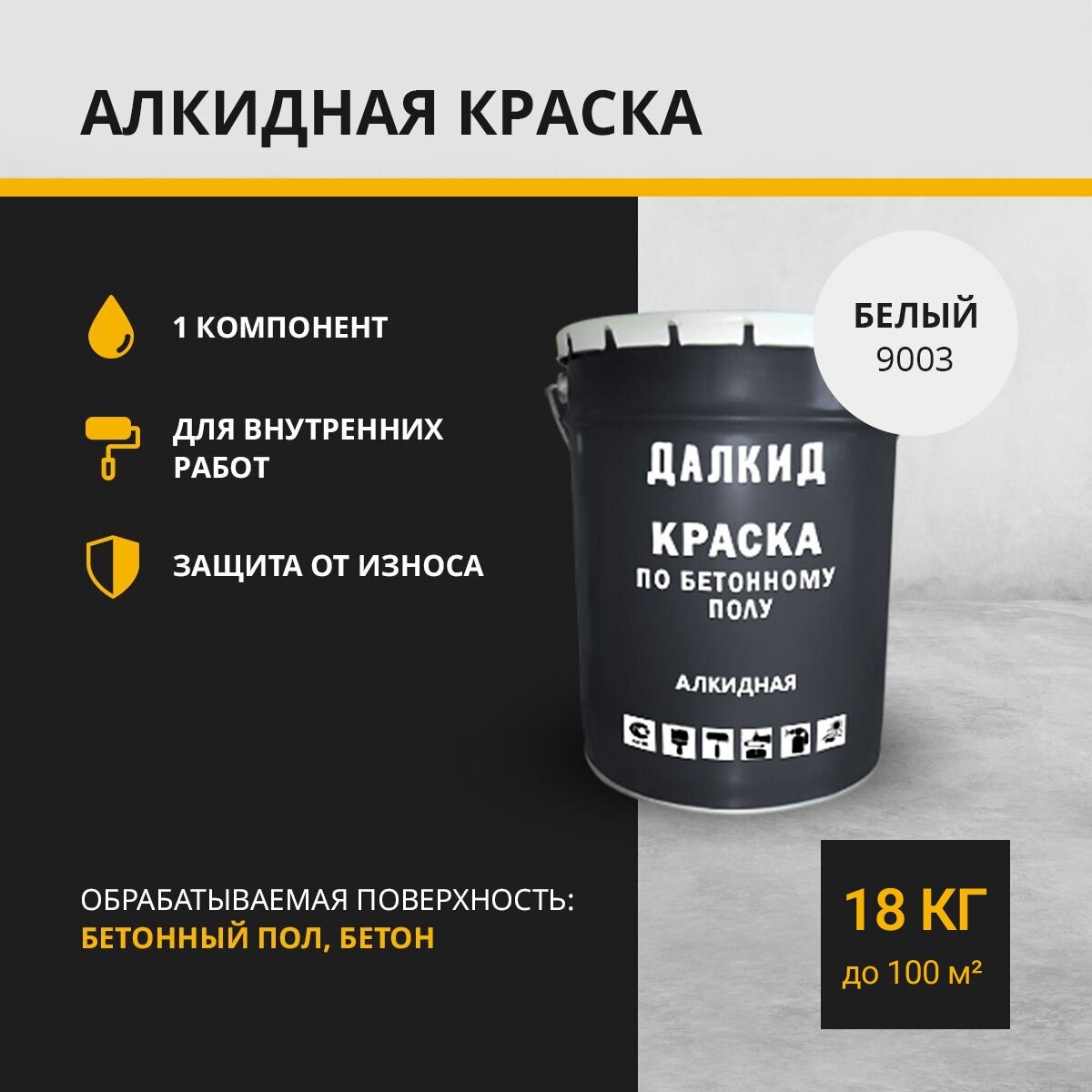Далкид Краска по бетонному полу, бетону, белый 18 кг информация: