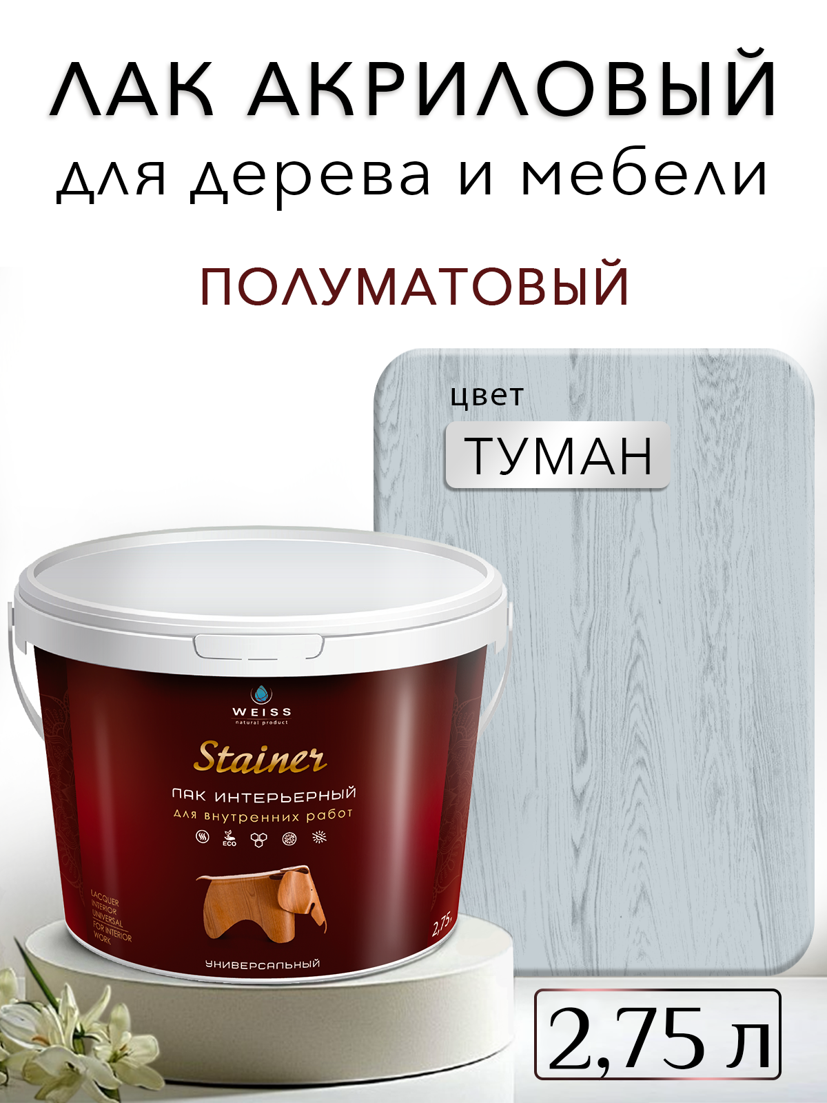 10 цен на Лак для дерева акриловый туман, полуматовый, Weiss natural product, без запаха, самовыравнивающийся, 2.75л