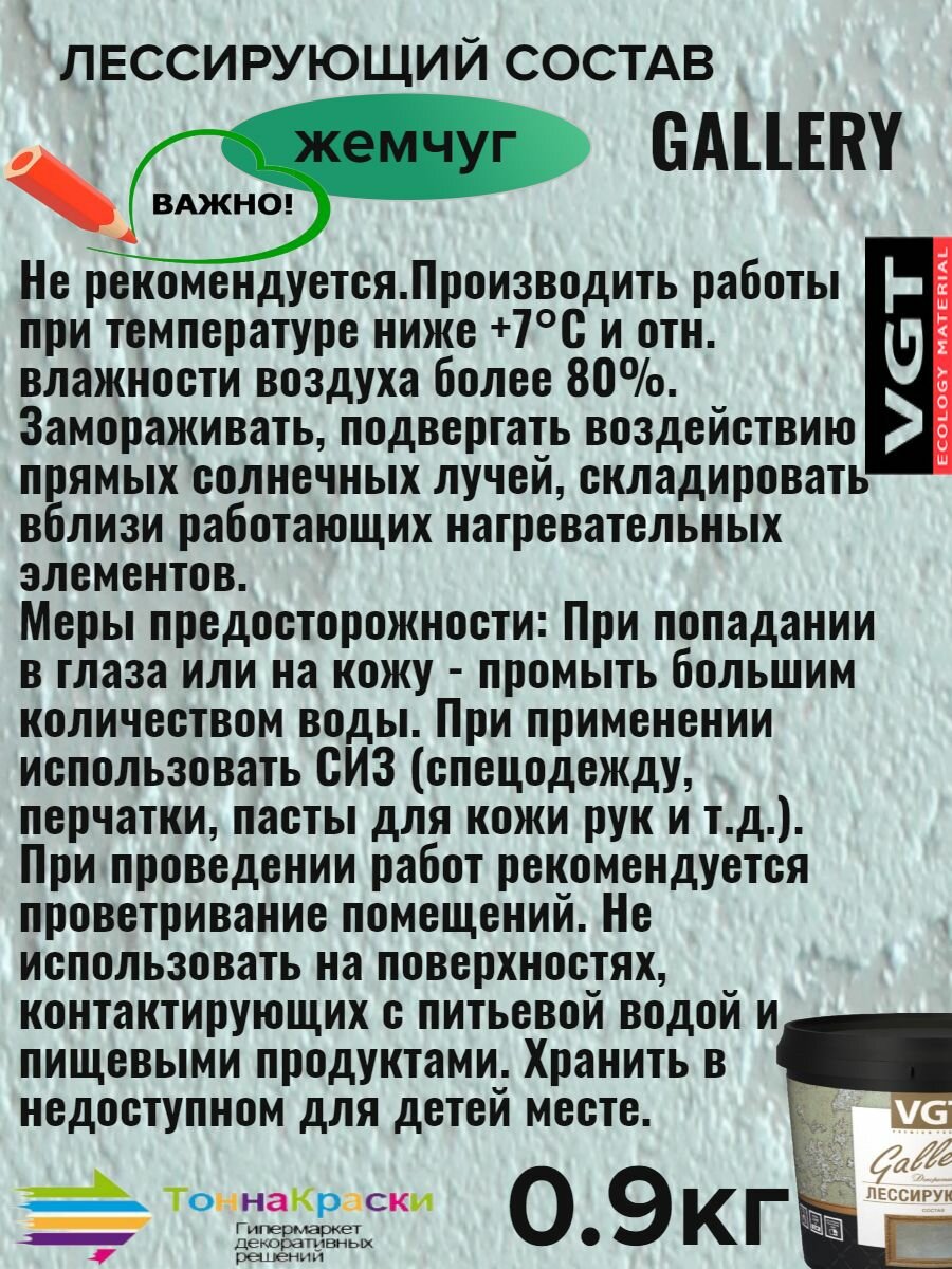 Лессирующий состав VGT Gallery полупрозрачный жемчуг 0.9 кг информация: