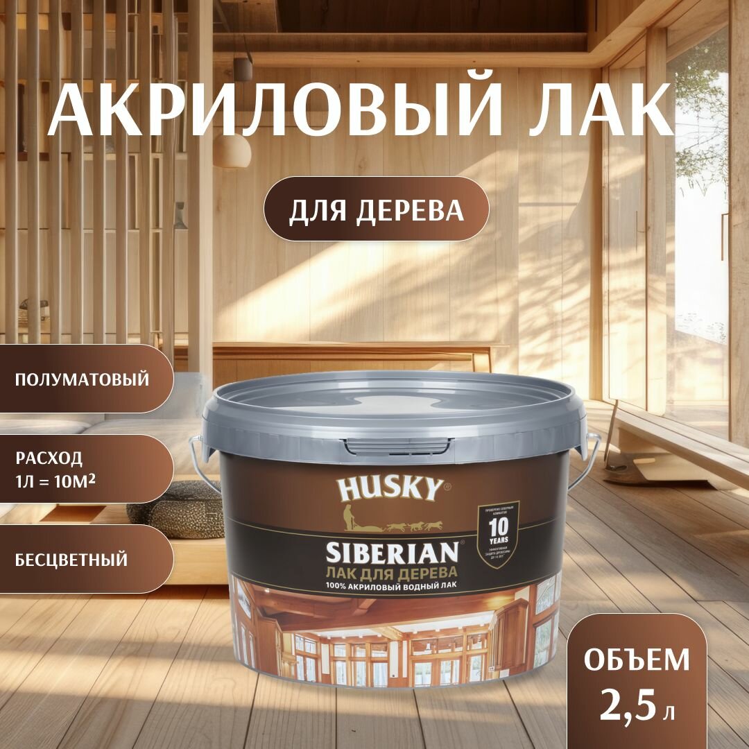 Хаски / Лак для дерева акриловый Husky Аквалак, лак бесцветный для мебели, стен, потолков полуматовый (2,5л) информация: