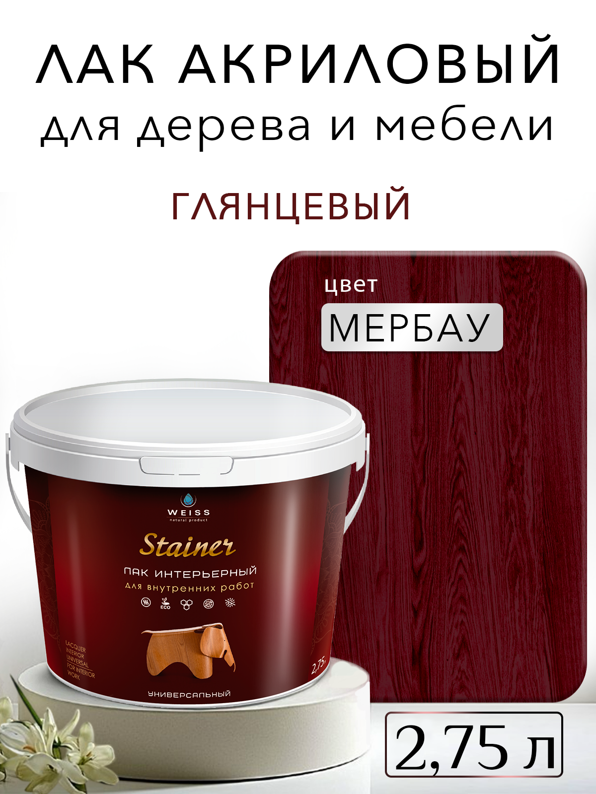 10 цен на Лак для дерева акриловый мербау, глянцевый, Weiss natural product, без запаха, самовыравнивающийся, 2.75л