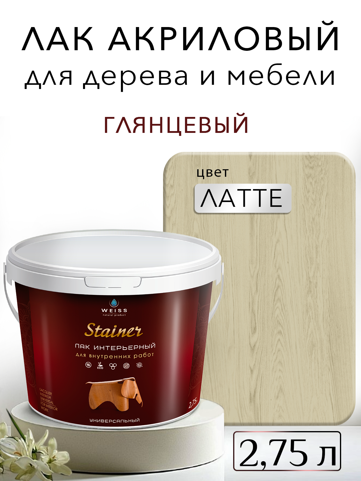 10 цен на Лак для дерева акриловый латте, глянцевый, Weiss natural product, без запаха, самовыравнивающийся, 2.75л