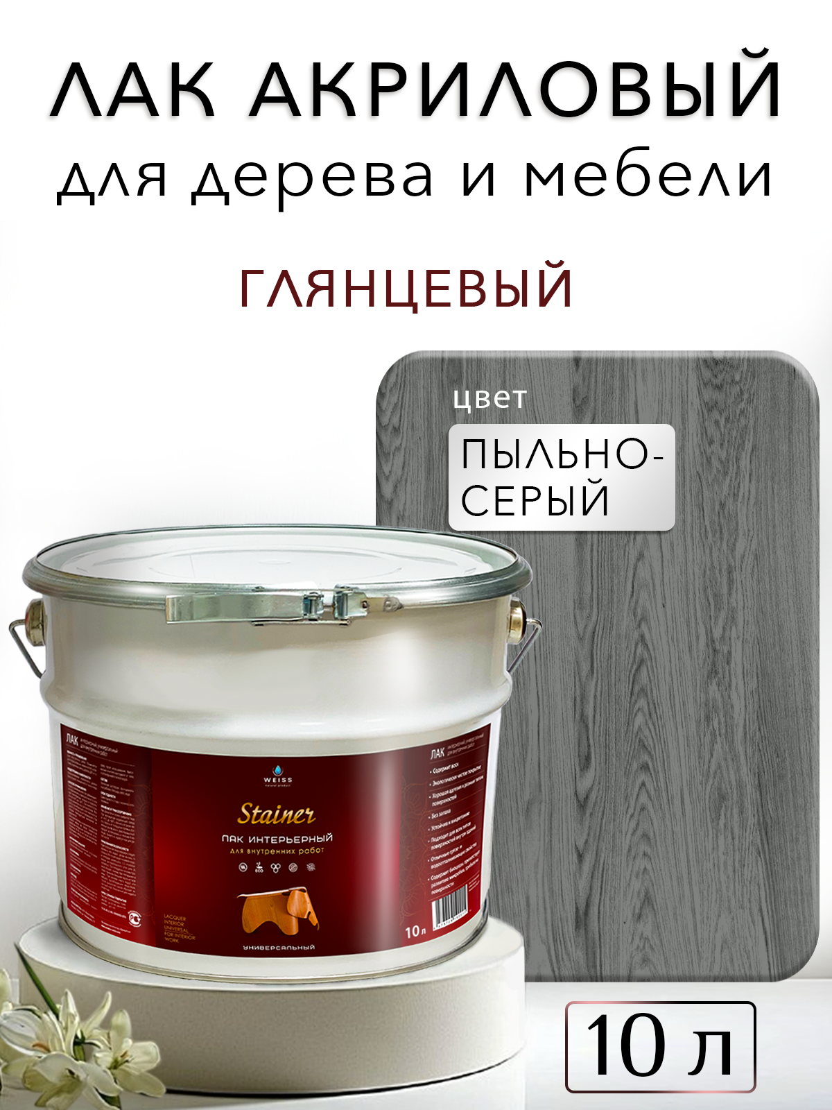 10 цен на Лак для дерева акриловый пыльно-серый, глянцевый, Weiss natural product, без запаха, самовыравнивающийся, 10л