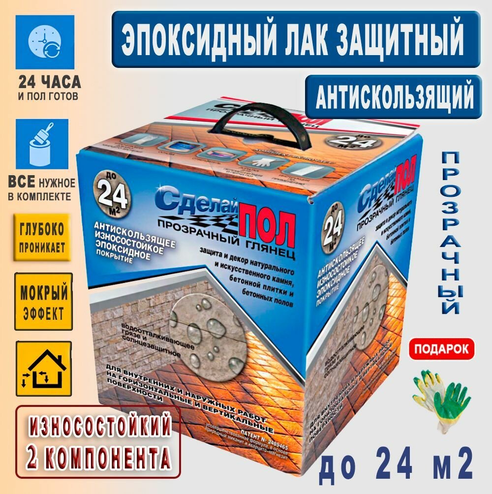 10 цен на Эпоксидное покрытие Прозрачное антискользящее 2-х компонентное на 24 м2 "Сделай пол", для пола и стен на улице и в интерьере