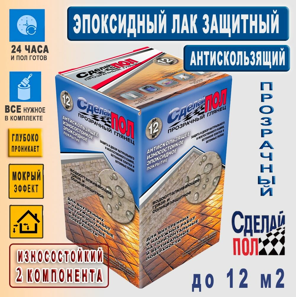 10 цен на Эпоксидное покрытие Прозрачное антискользящее 2-х компонентное до 12 м2 "Сделай пол", для пола и стен на улице и в интерьере
