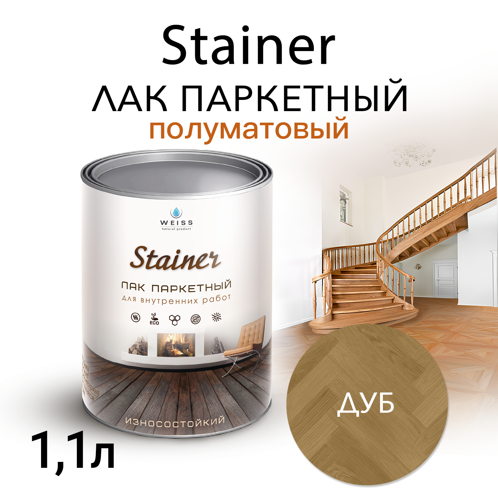 Лак строительный Weiss Natural Product, паркетный, полуматовый, без запаха, 1,1 л информация: