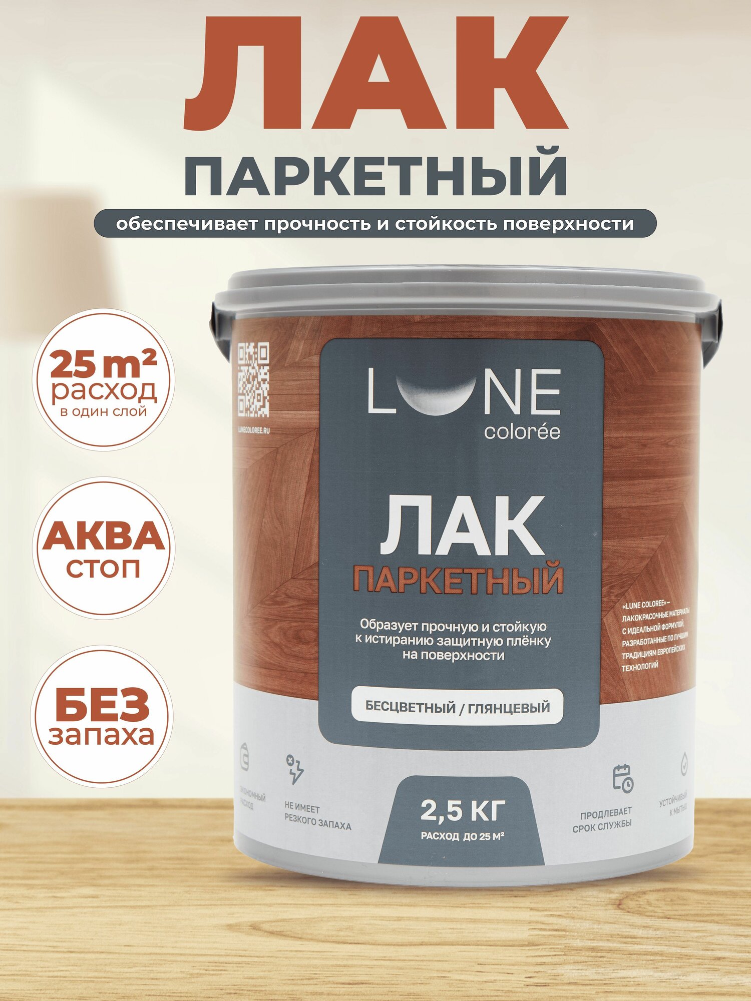 Лак паркетный по дереву акриловый для пола Lune Coloree глянцевый 2.5 кг информация: