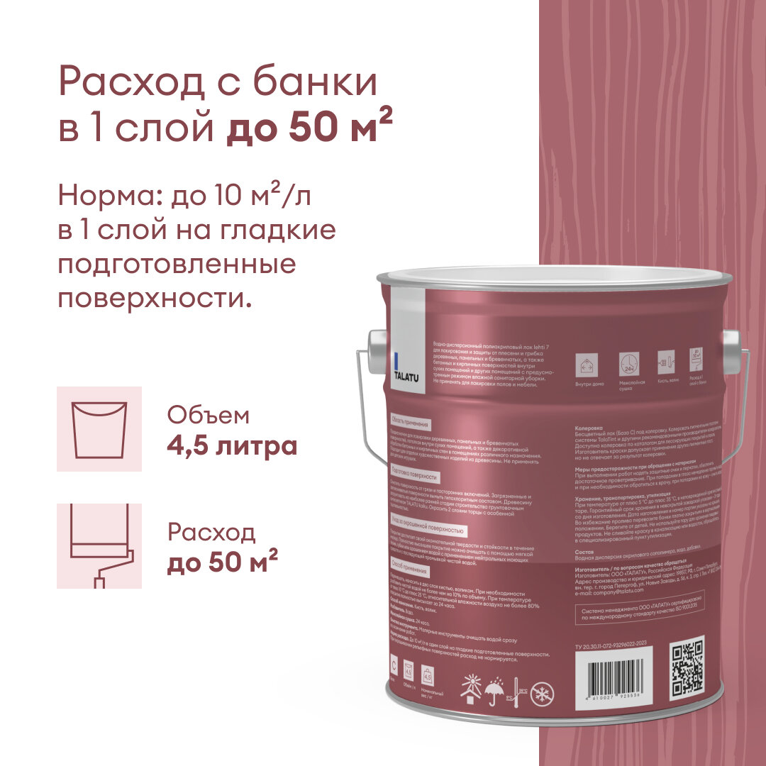10 цен на Лак для дерева Talatu Lehti 7, акриловый, матовый, база С, бесцветный, 4,5 л