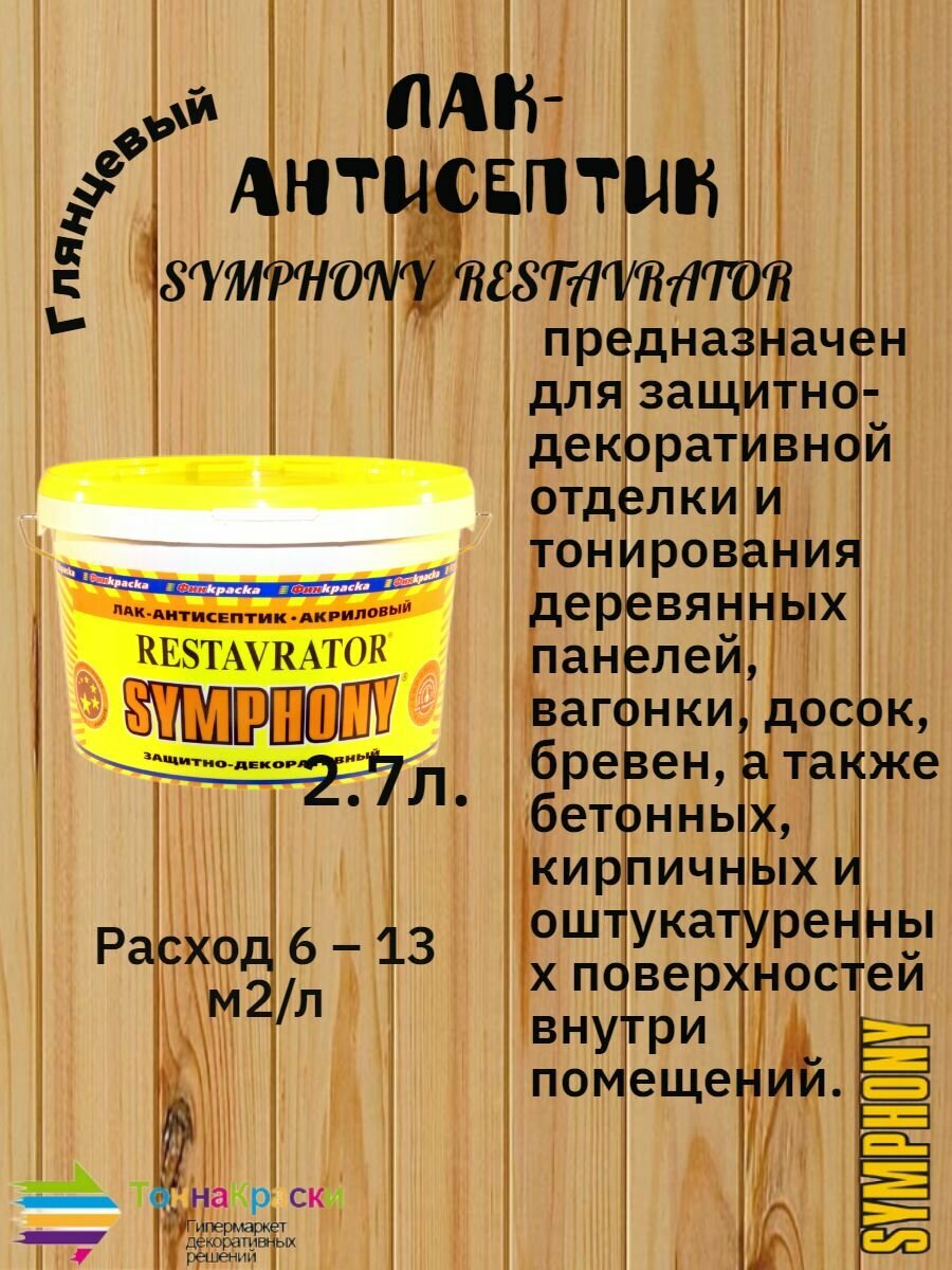 Лак акриловый антисептик Symphony реставратор EP глянцевый 2.7л информация: