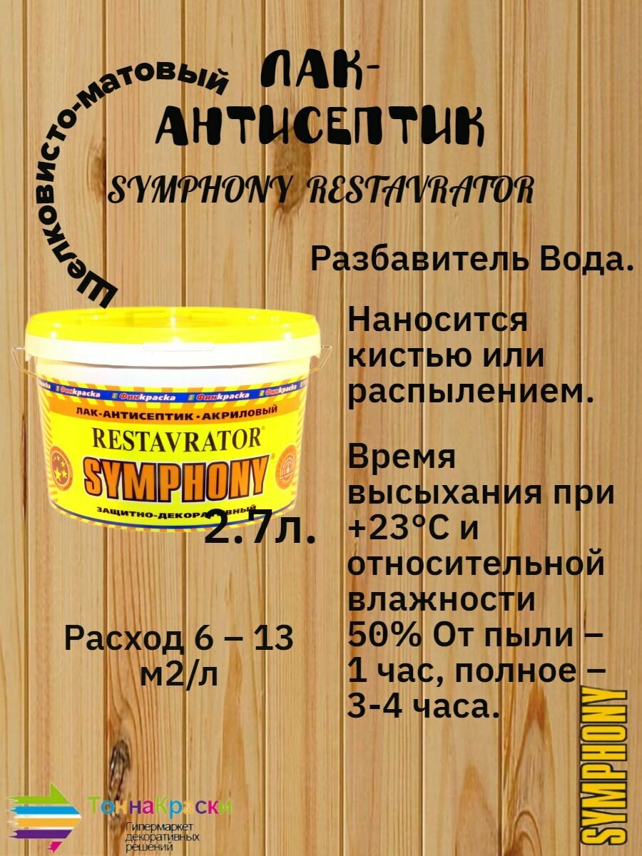 Акриловый лак антисептик Symphony реставратор EP шелковисто матовый 2.7л информация: