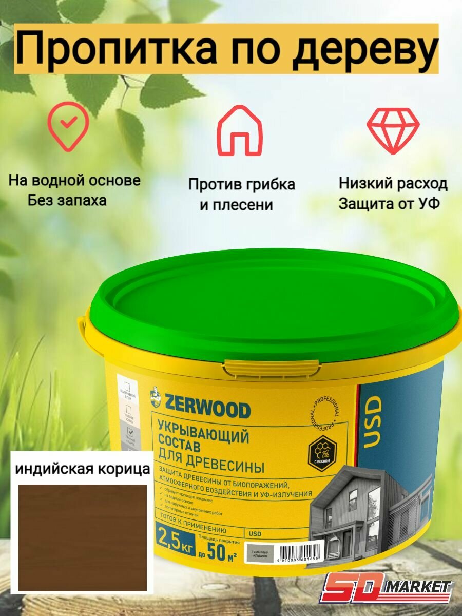 Пропитка по дереву антисептик ZERWOOD USD укрывающий индийская корица 2.5 кг информация: