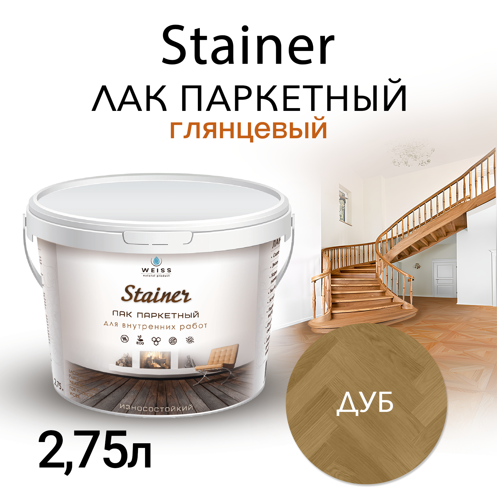 Лак Weiss Natural Product, паркетный, глянцевый, без запаха, 2,75 л информация: