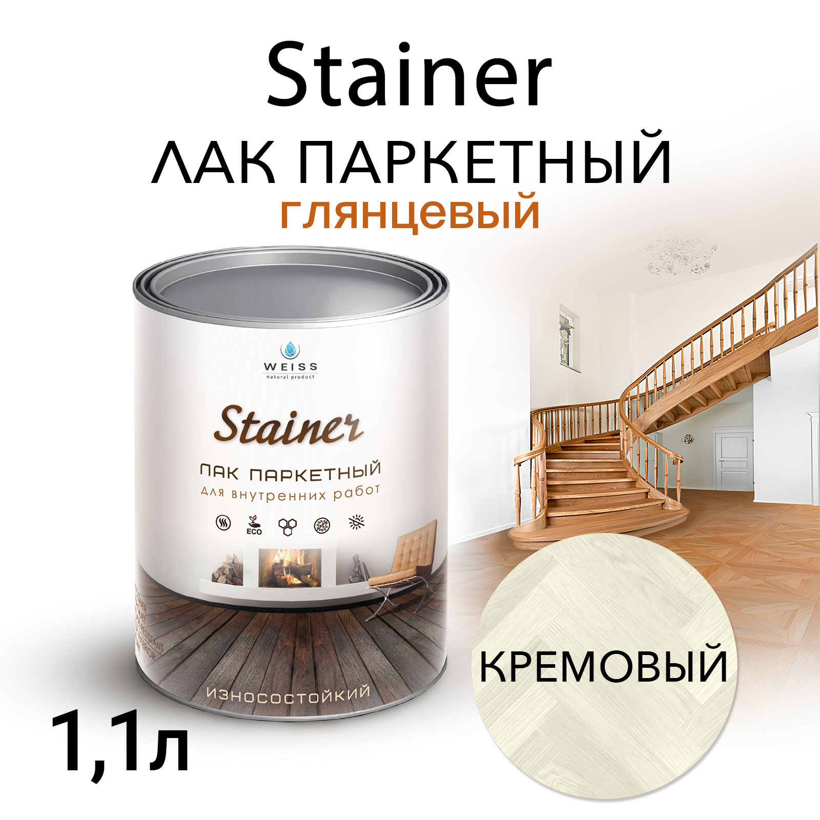 Лак паркетный Weiss Natural Product, кремовый, глянцевый, без запаха, 1,1 л информация: