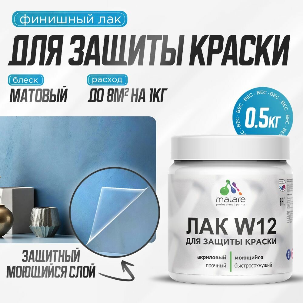 Лак для защиты акриловых красок Malare моющийся универсальный быстросохнущий экологичный, матовый, 0.5 кг информация: