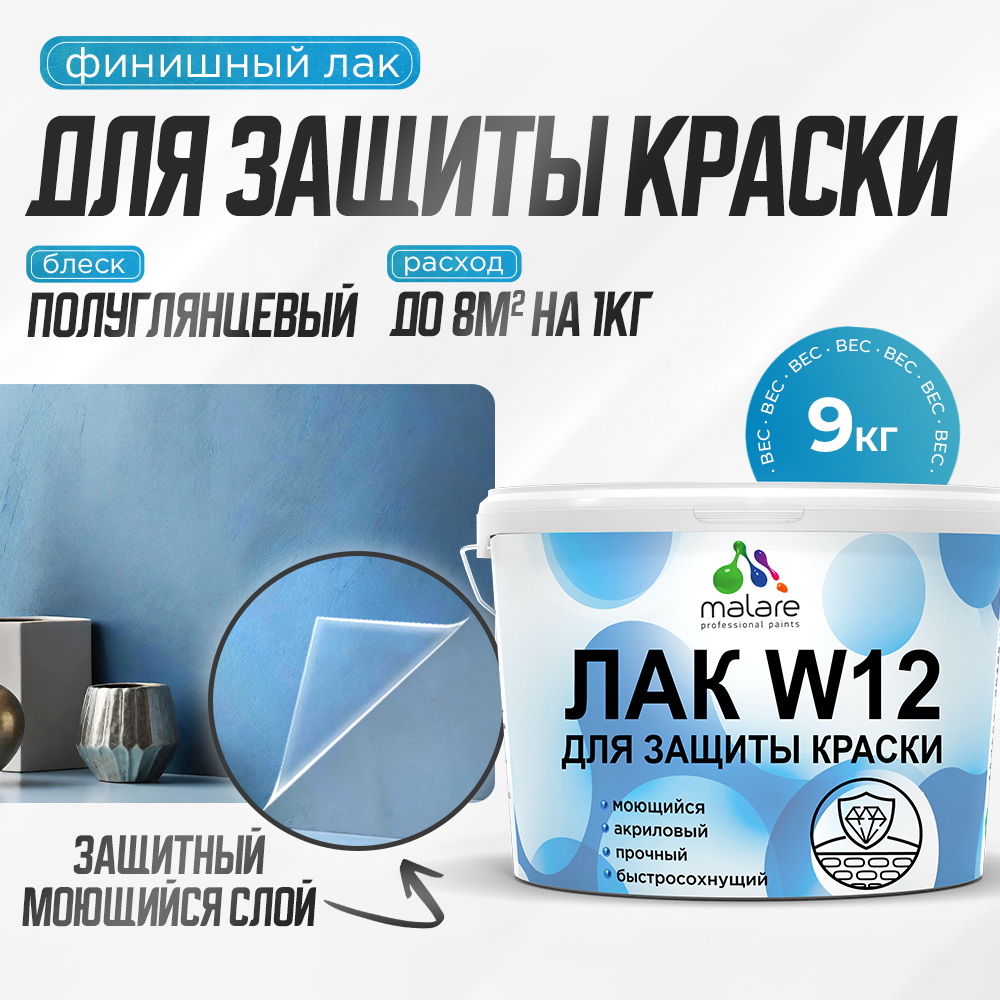 Лак для защиты акриловых красок Malare моющийся универсальный быстросохнущий экологичный, полуглянцевый, 9 кг информация: