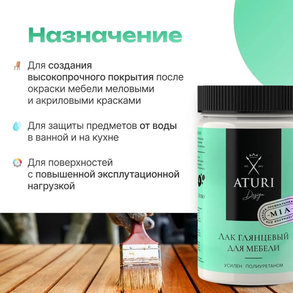 Лак глянцевый для мебели и декора Aturi Design MIA 0,29 кг, без запаха полиуретановый прозрачный быстросохнущий информация: