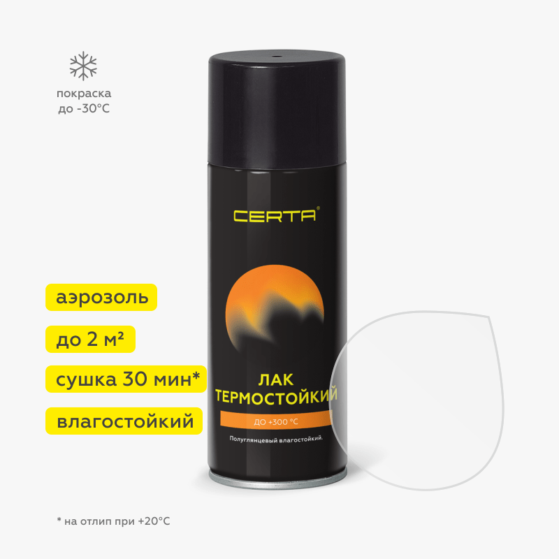 10 цен на Термостойкий лак церта прозрачный полуглянцевый водостойкий до 300 °C аэрозоль 520мл
