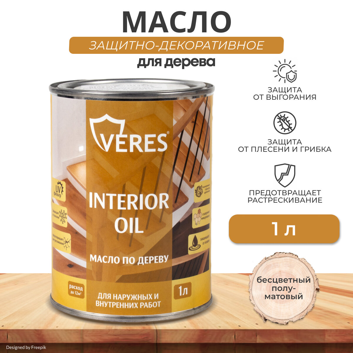 10 цен на Масло для дерева "Veres" Interior Oil, объем: 1 литр, цвет: бесцветный