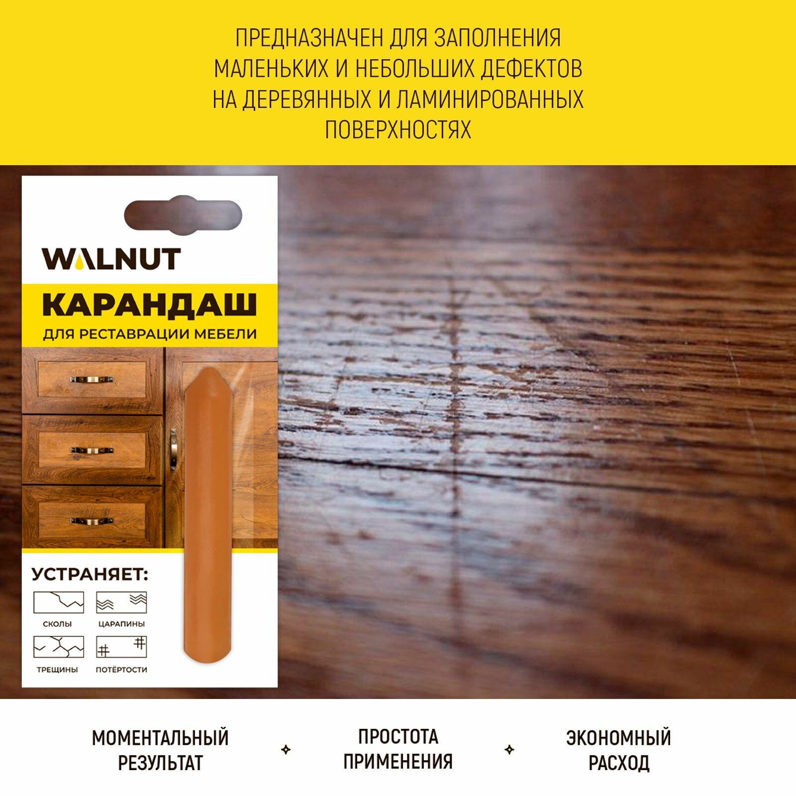 Отзывы на Восковой карандаш WALNUT "Венге Темный", для мебели, матовый, темно-коричневый