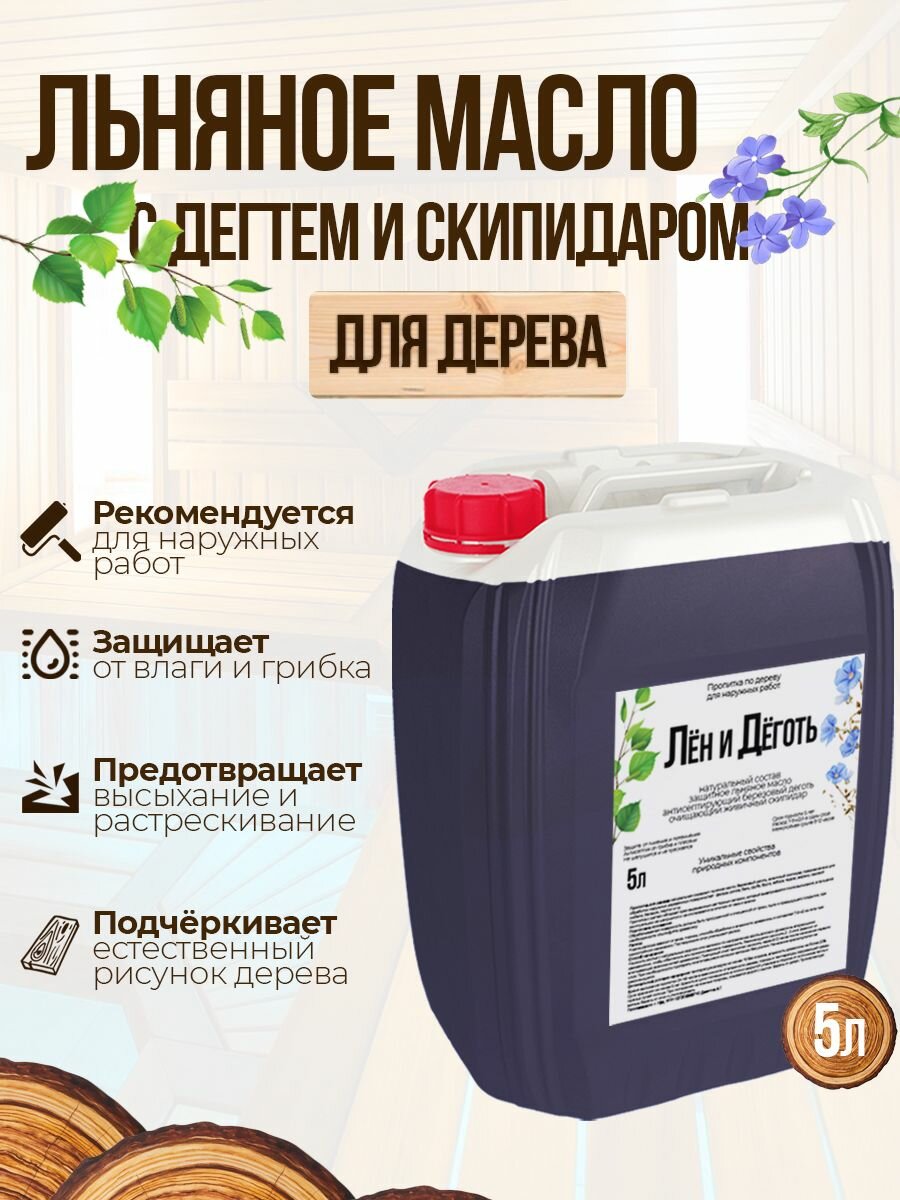 Льняное масло с дегтем берёзовым и живичным скипидаром для наружных работ по дереву, 5л информация: