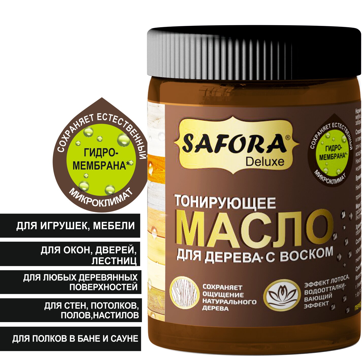 Масло для дерева с воском сосна SAFORA, 50 мл для наружных и внутренних работ