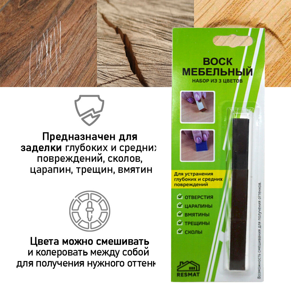 Воск мягкий для реставрации мебели и напольного покрытия/ 2 шт/ цвет - Дуб Седан