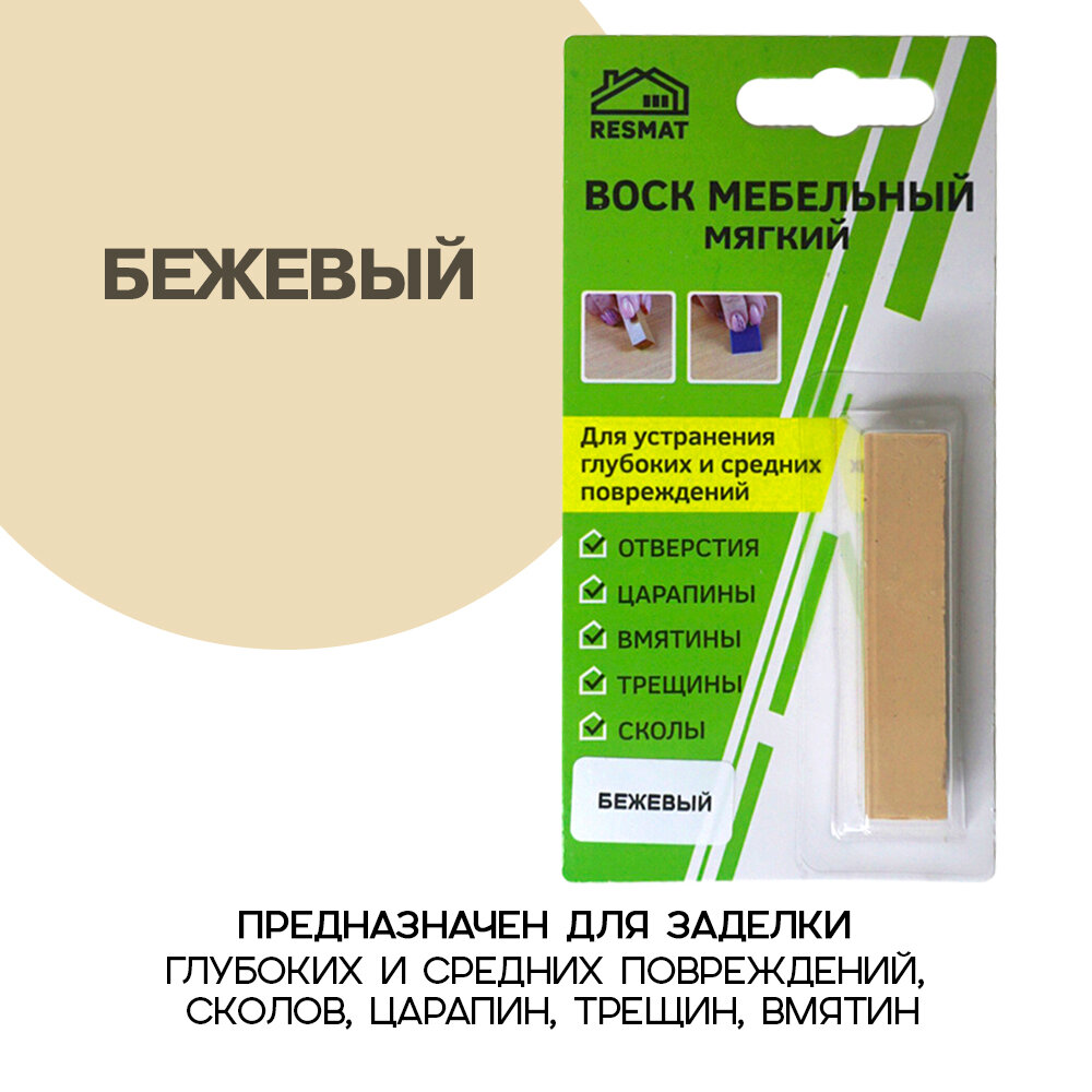 Воск мебельный Resmat для реставрации мебели и ламината 1 шт. в упаковке, бежевый информация: