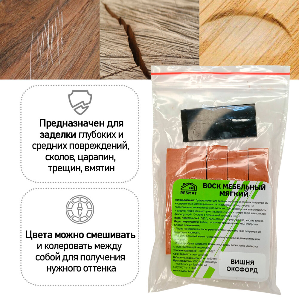 10 цен на Воск мягкий Resmat для реставрации мебели и напольного покрытия, 5 шт, цвет - Вишня Оксфорд
