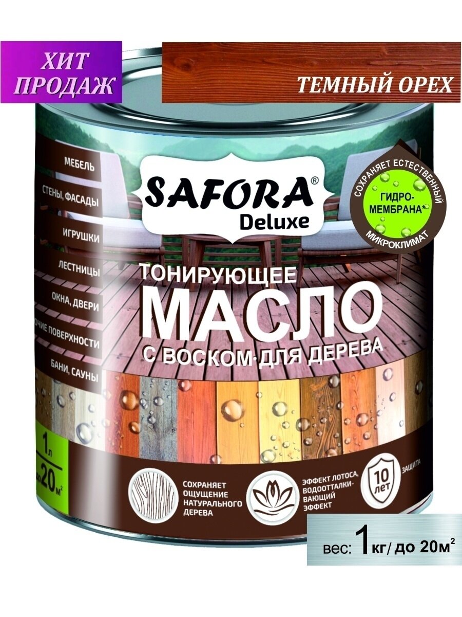 10 цен на Масло для дерева с воском, темный орех 1 л SAFORA для наружных и внутренних работ