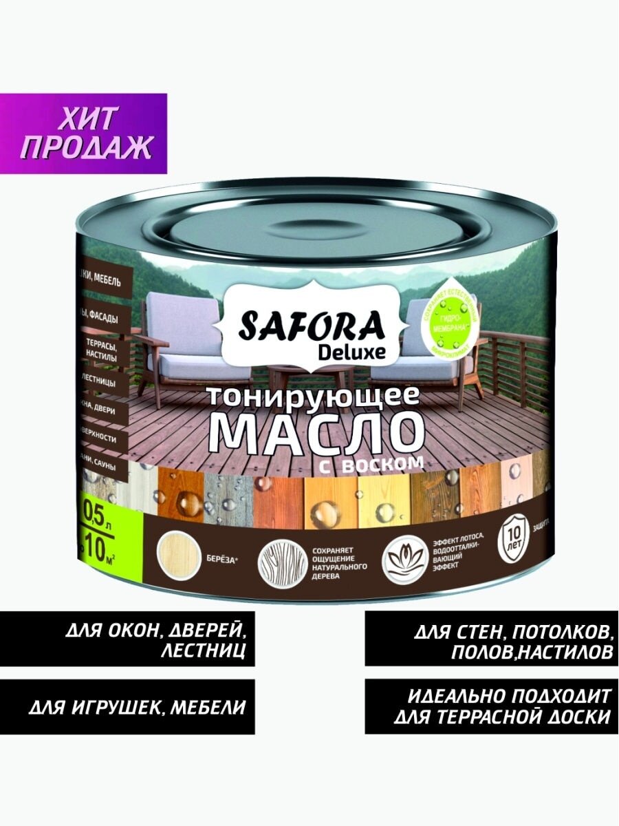 Масло для дерева с воском береза/белое SAFORA 500 мл для наружных и внутренних работ информация: