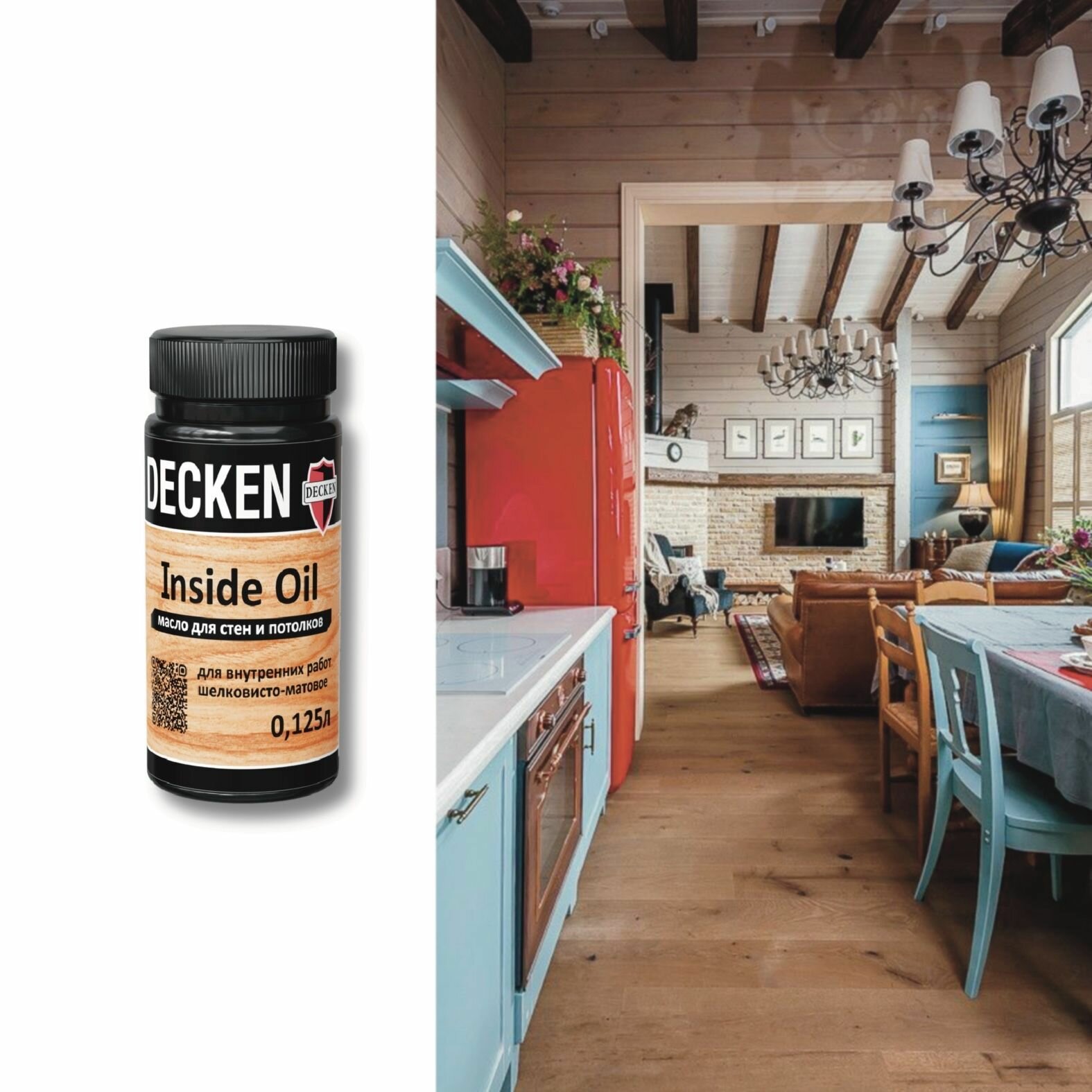 Масло для дерева, DECKEN, Inside Oil, для стен и потолков, бесцветное, 0,125 л 710 ₽