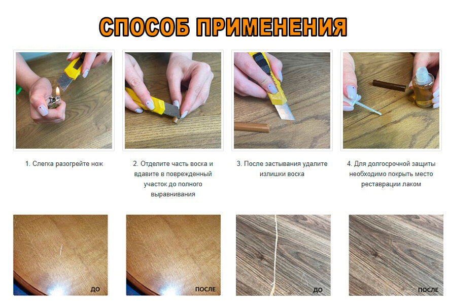 Отзывы на Восковой мелок для ремонта сколов на ламинате и паркете, Бежевый