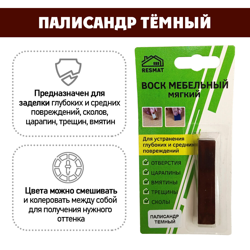 Воск мягкий Resmat для реставрации мебели и напольного покрытия, 1 шт, цвет - Палисандр Темный информация:
