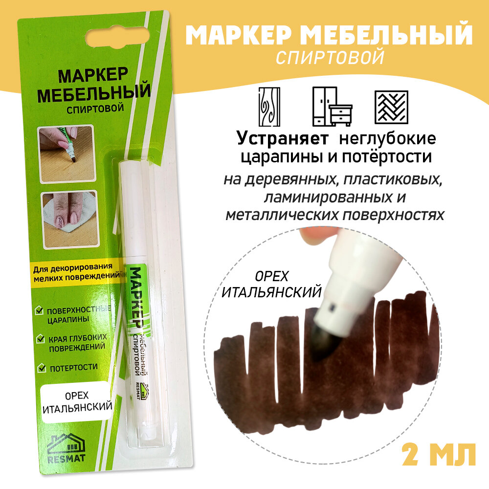 Мебельный маркер Resmat СПИРТОВОЙ, объем краски 2 мл, цвет - Орех Итальянский информация: