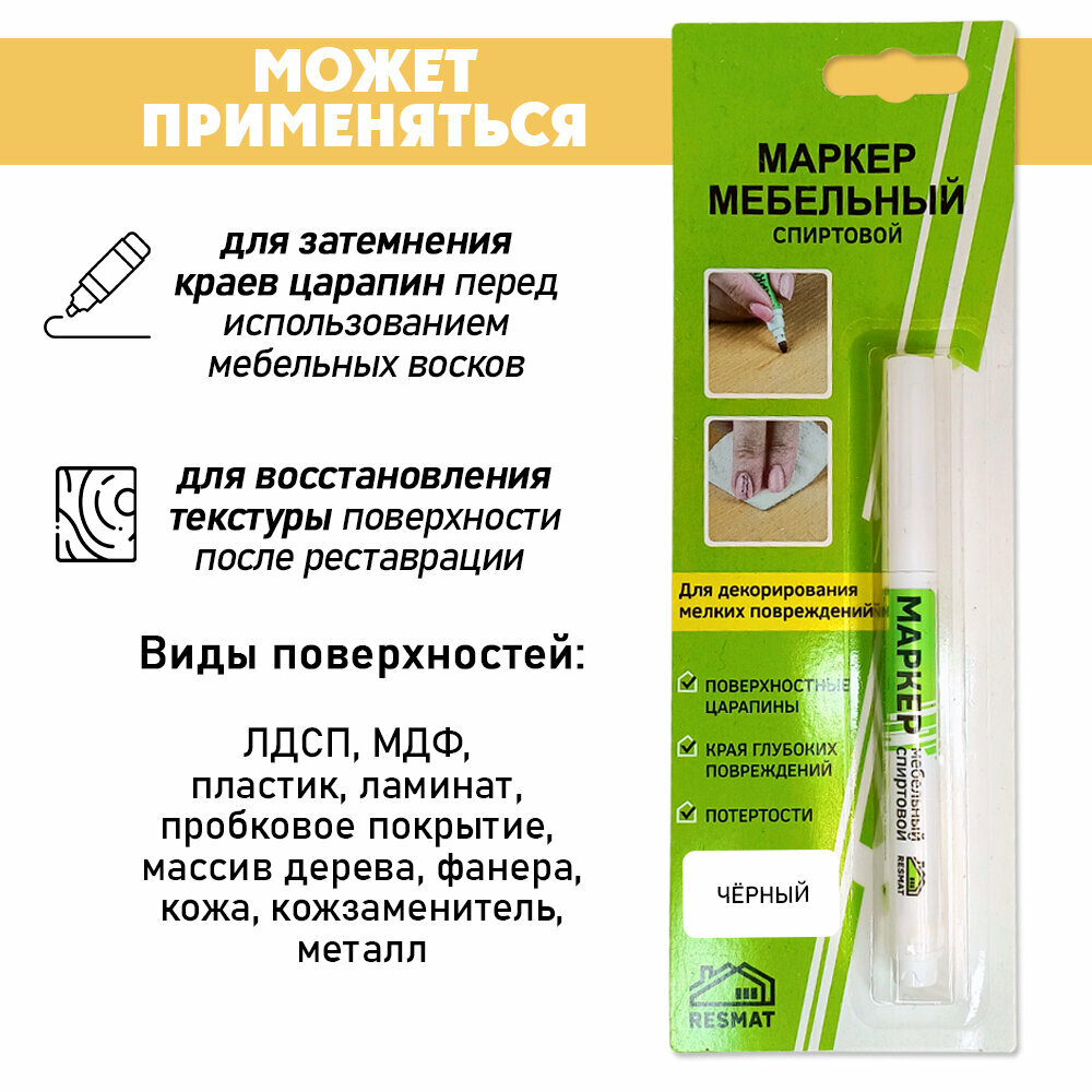 Отзывы на Мебельный маркер Resmat СПИРТОВОЙ, объем краски 2 мл, цвет - Черный