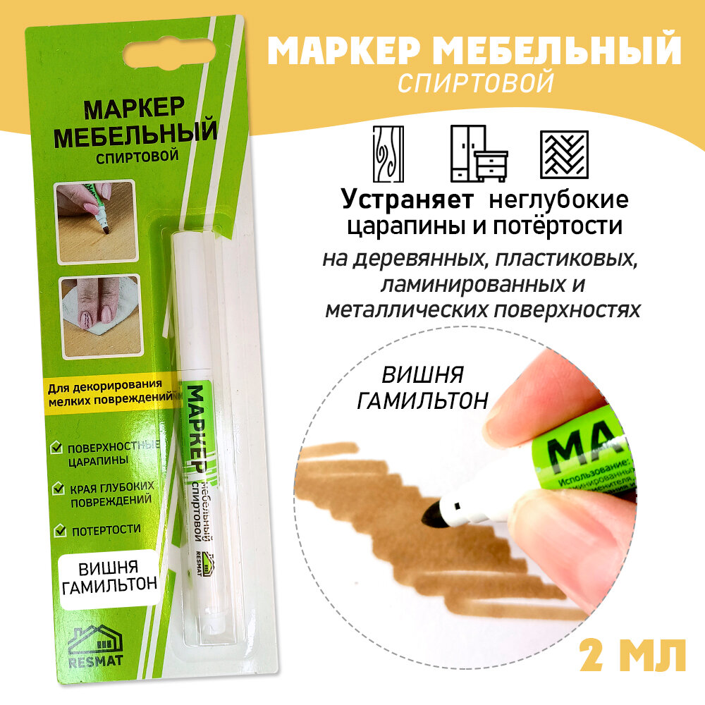 Отзывы на Мебельный маркер Resmat СПИРТОВОЙ, объем краски 2 мл, цвет - Вишня Гамильтон