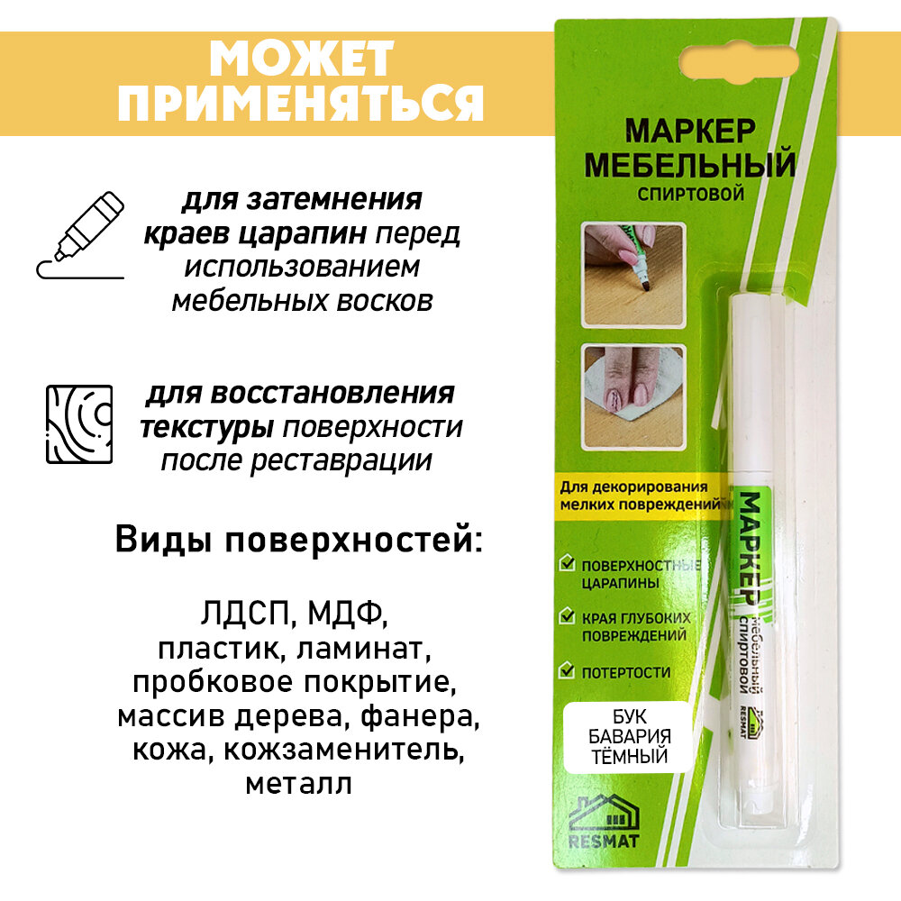 Отзывы на Мебельный маркер Resmat СПИРТОВОЙ, объем краски 2 мл, цвет - Бук Бавария Темный