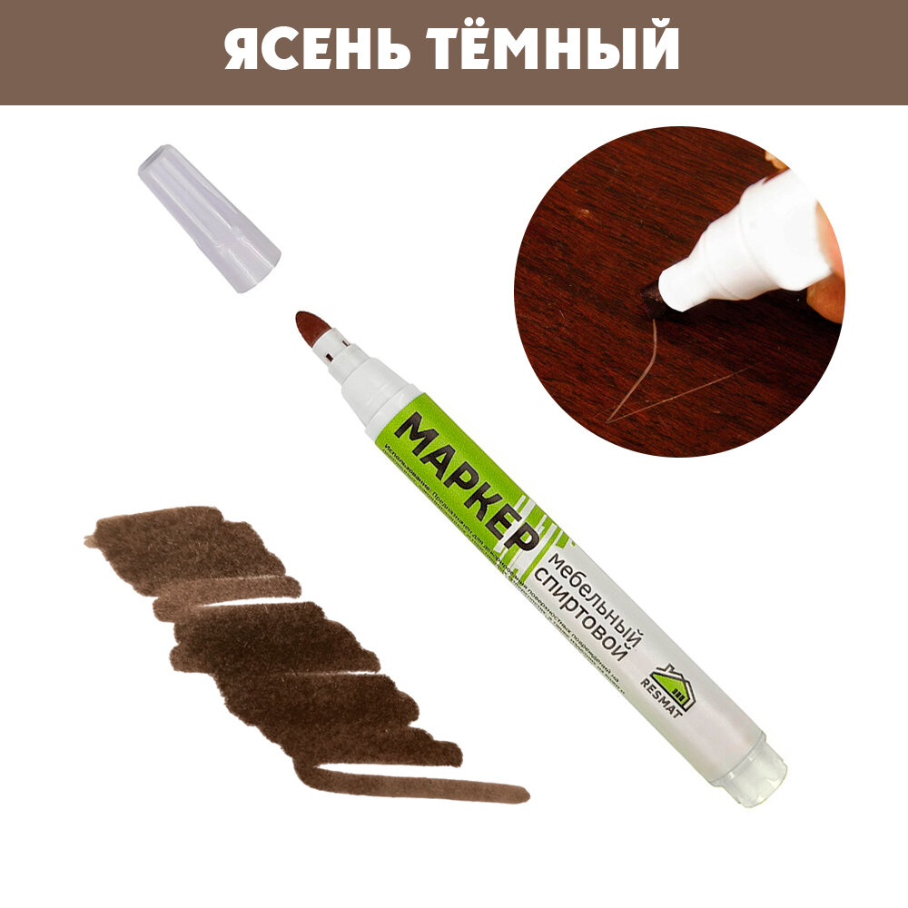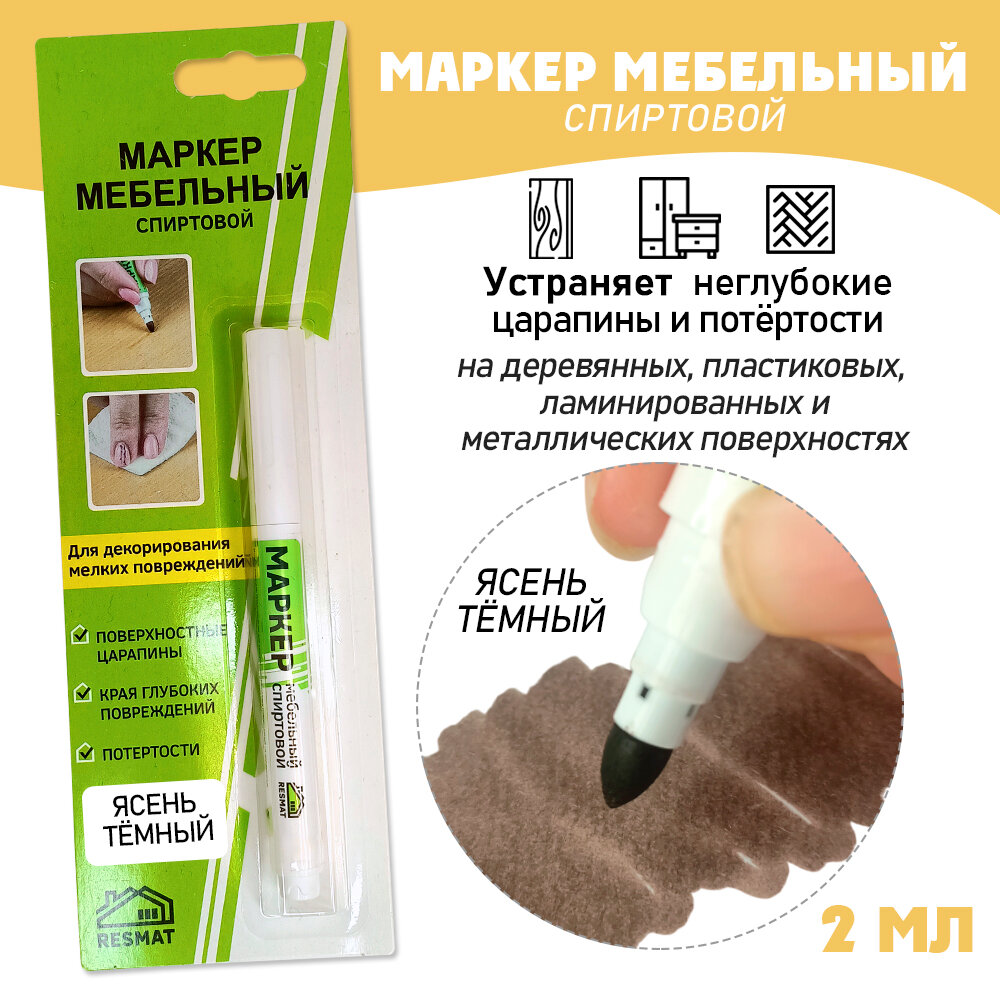 Отзывы на Мебельный маркер Resmat СПИРТОВОЙ, объем краски 2 мл, цвет - Ясень Темный