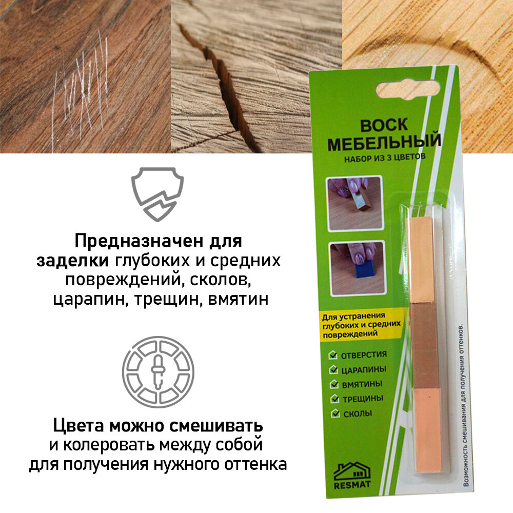 Воск мягкий для реставрации мебели и напольного покрытия/ 2 шт/ цвет - Дуб Седан