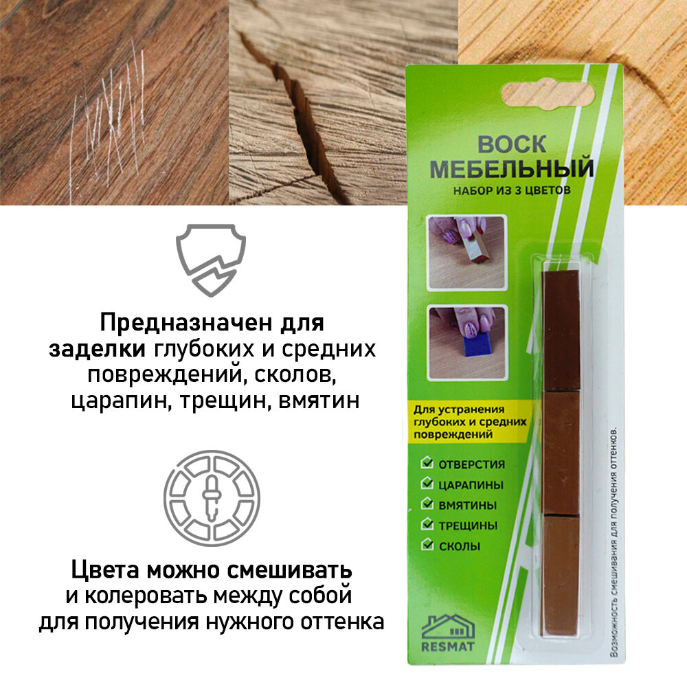 Воск мягкий для реставрации мебели и напольного покрытия/ 2 шт/ цвет - Дуб Седан