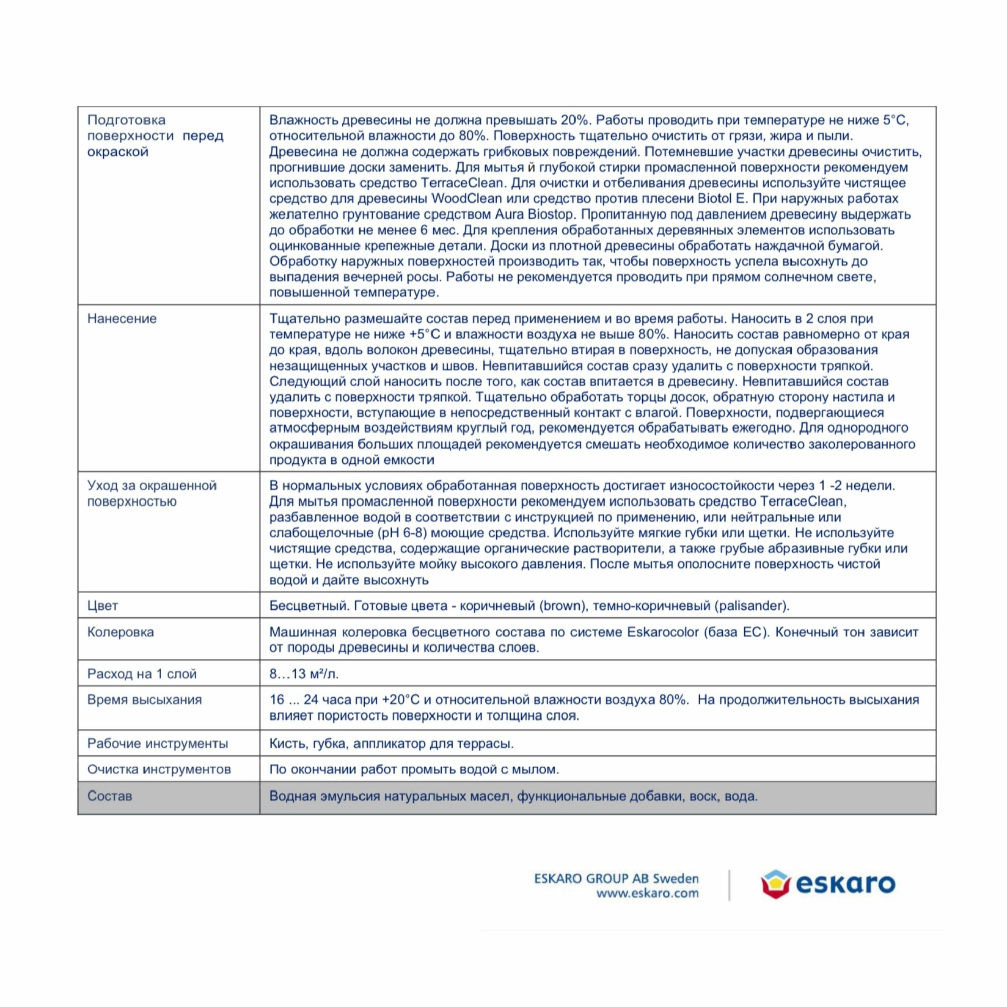 Масло для дерева, для террас ESKARO Terrace Aqua, шоколад, 0,9л информация: