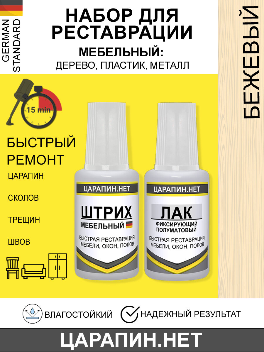 10 цен на Набор для реставрации мебели, полов, дверей. Штрих мебельный +лак, Цвет- Бежевый