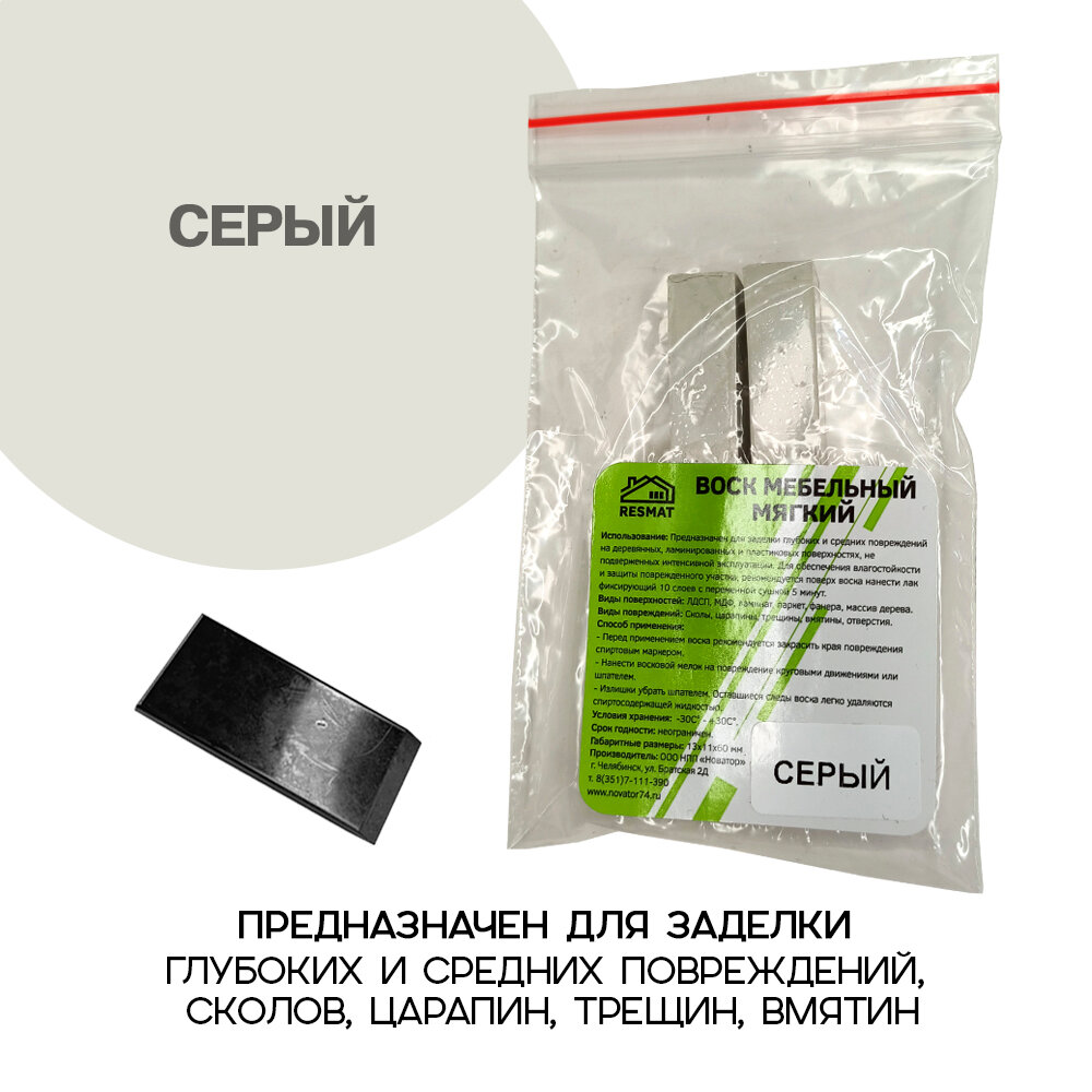 Воск мебельный Resmat для реставрации мебели и ламината 2 шт. со шпателем, серый информация: