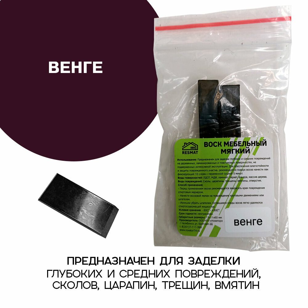 Воск мебельный Resmat для реставрации мебели и ламината 2 шт. со шпателем, "Венге" информация: