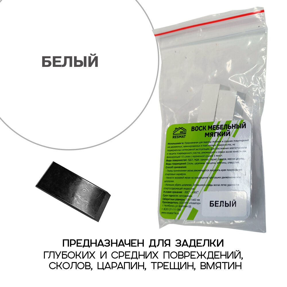Воск мебельный Resmat для реставрации мебели и ламината 2 шт. со шпателем, белый информация: