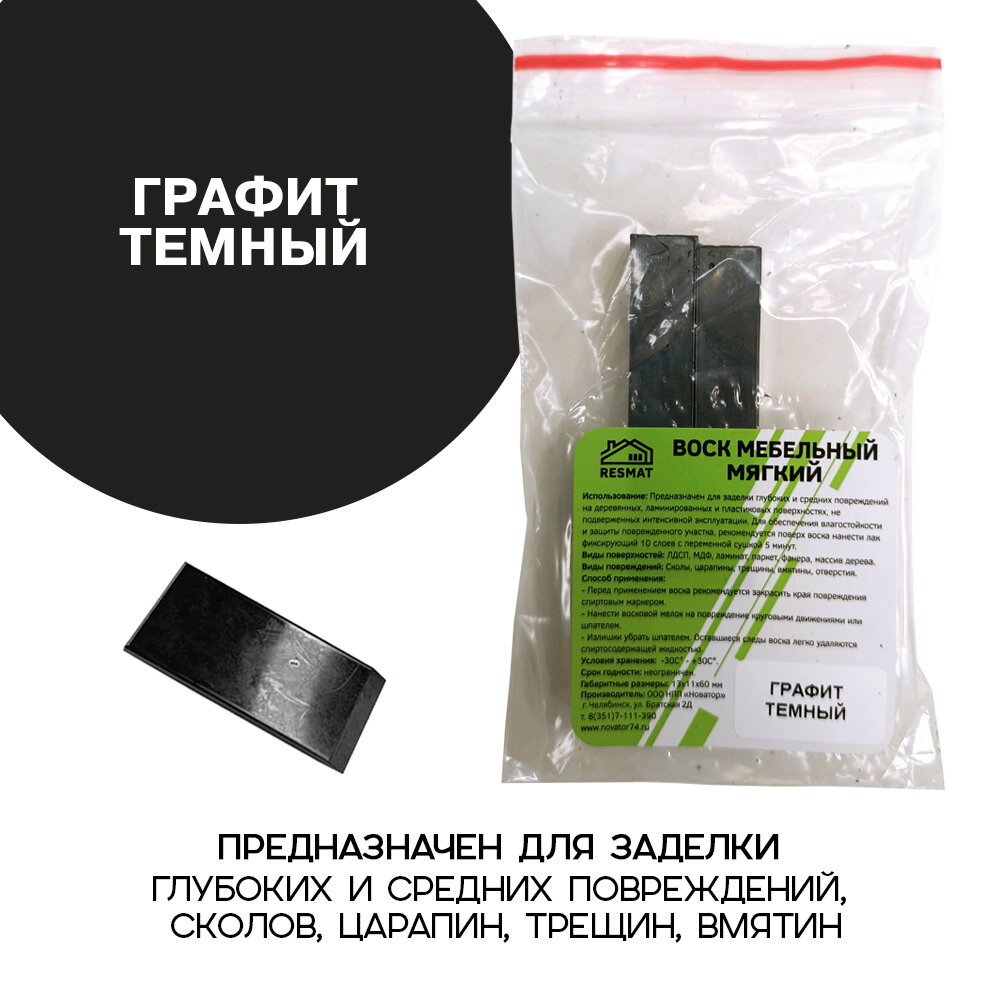Воск мебельный Resmat для реставрации мебели и ламината 2 шт. со шпателем, "Графит Темный" информация: