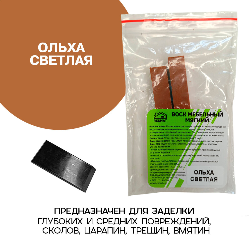 Воск мебельный Resmat для реставрации мебели и ламината 2 шт. со шпателем, "Ольха Светлая" информация: